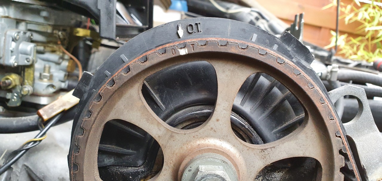 J'avais également aligné la poulie d'accessoire avec le repère OT mais en regardant le doigt d'allumeur, il n'était pas dans la bonne direction (il n'était pas en face de la marque sur le corps de l'allumeur)