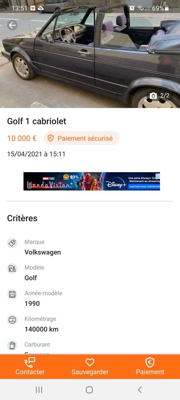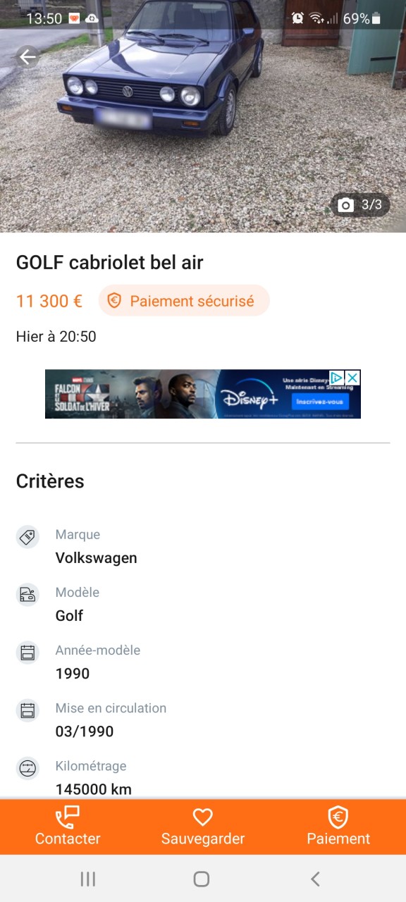 - Voiture : Golf 1 cabriolet