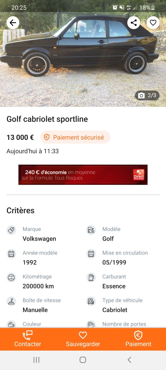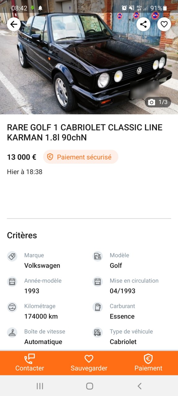 - Voiture : Golf 1 cabriolet