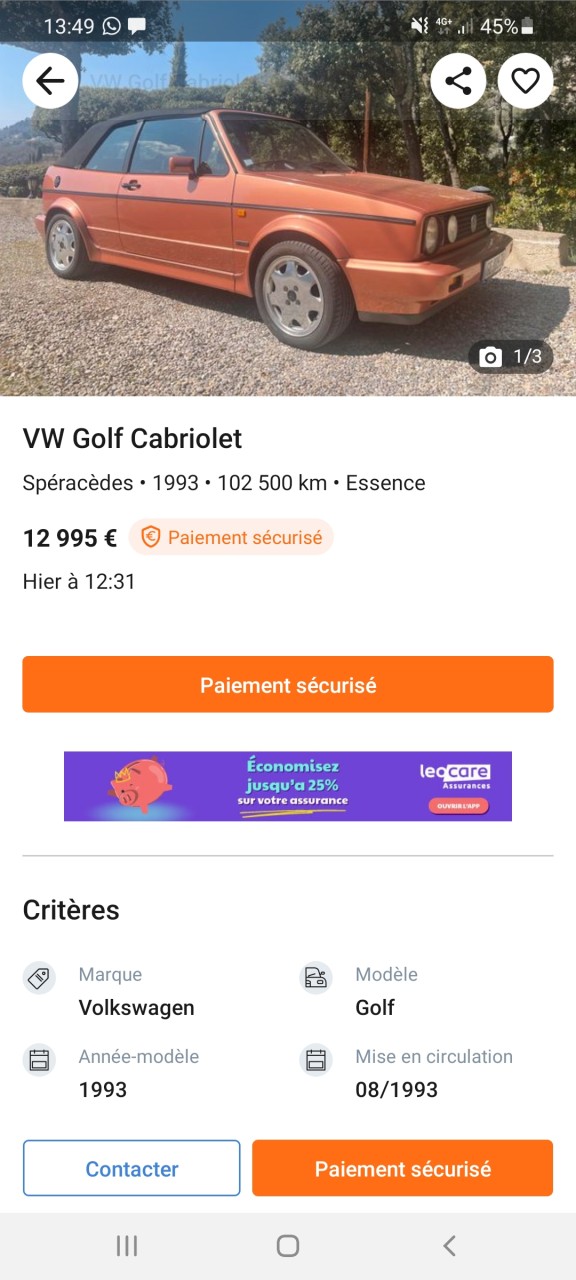 Re: Golf 1 Cabriolet...belles occasions au-dessus de 10.000€