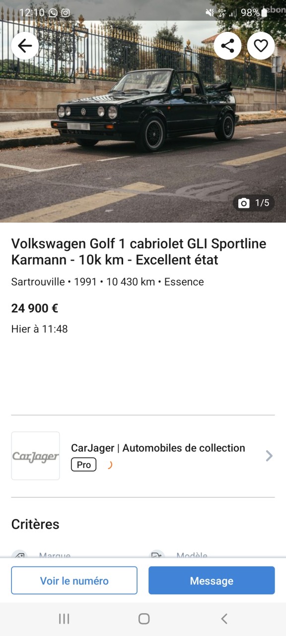 Re: Golf 1 Cabriolet...belles occasions au-dessus de 10.000€