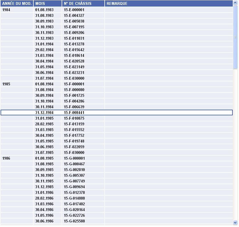 il faudrait que tu me donnes un numéro de chassis. mais dans tous les cas, avant 86-87 rien n'est renseigné.