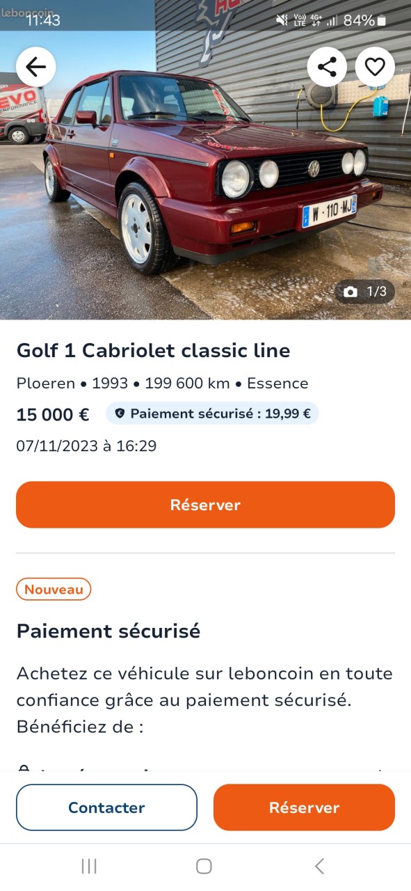 - Voiture : Golf 1 cabriolet