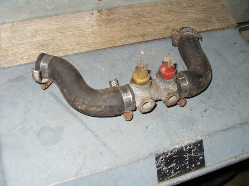 Je pense plutôt à une bidouille de l'ancien proprio. Si tu n'as plus le radiateur avec vase d'expension incorporé, ta pièce (qui a le diamètre de durite d'eau) doit aller entre ta sortie d'eau de culasse (en biais sur la gauche) et l'entrée (en haut) d'un radiateur plus récent. Les sondes qui sont dessus sont pour 1. La température de LDR et 2. Le réglage à froid.KlEbEr.FaRiA a écrit :J'ai vu que Mr ECO (page 4) a posté presque la même photo mais moi je l'ai avec les durites...donc c'est un support de sonde moteur... normalement c'est pour un JB mais je ne comprends pas la réponse "à droite de la culasse" de Stef.beaver66. Quelqu'un aurait une photo de la pièce posée...???