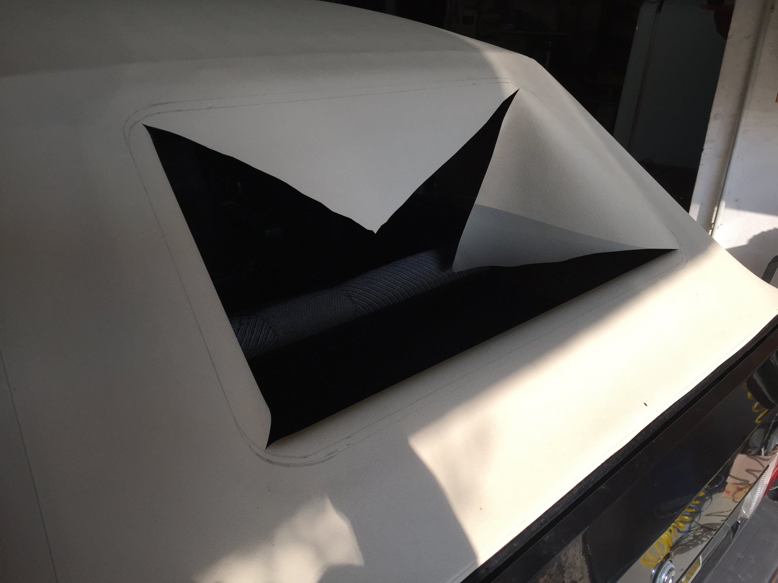 Par contre je trouve que ta lunette est relativement haute. La bande au dessus du capot de malle me semble plus large que la normale. Elle était bien plaquée avant perçage ?