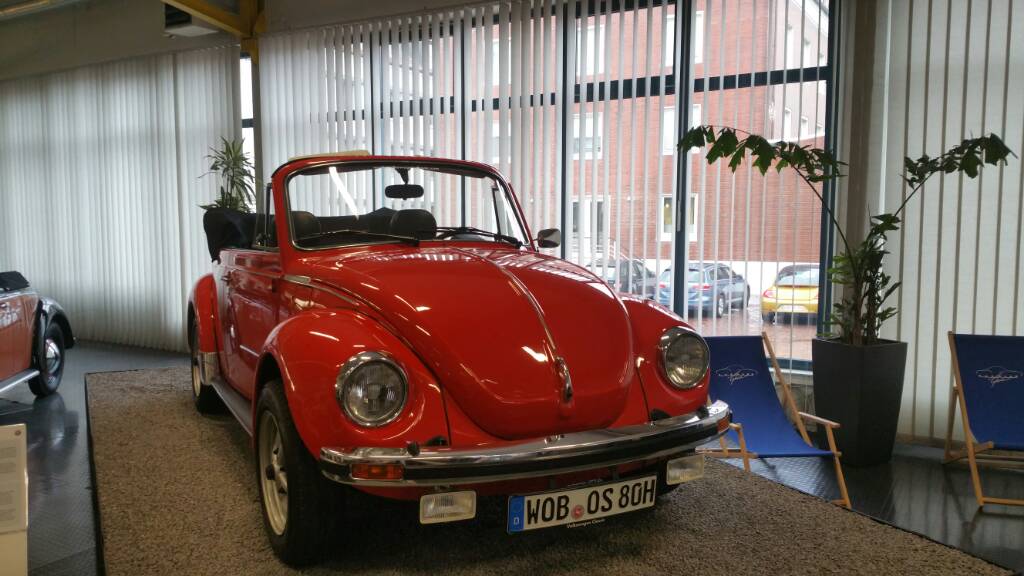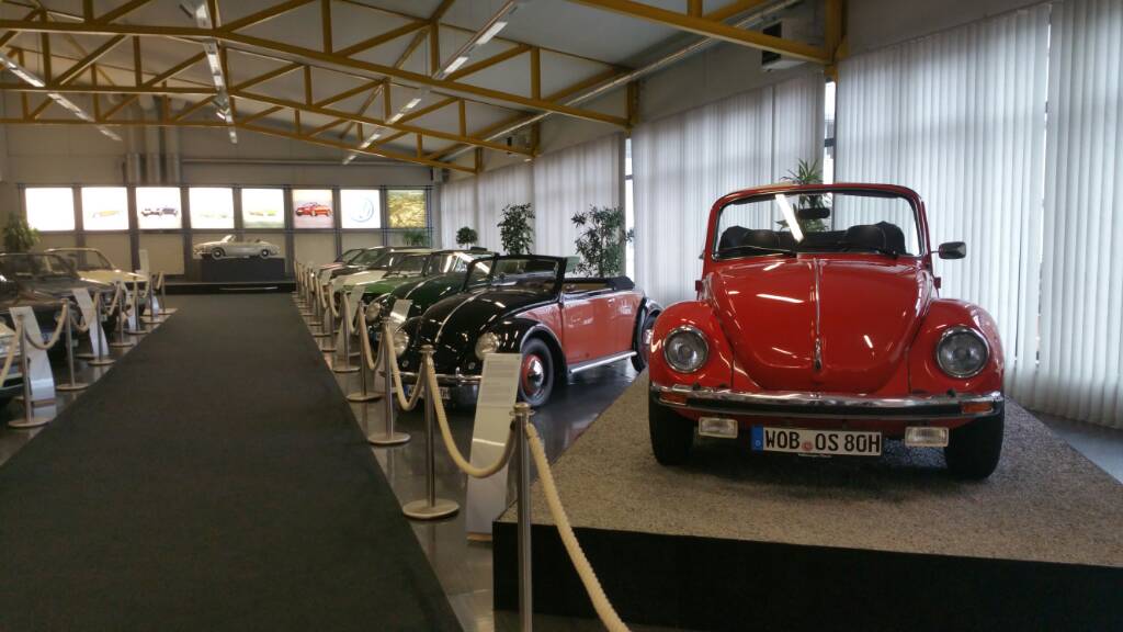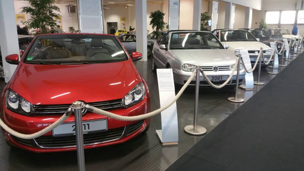 ce qui fait plaisir..... la coccinelle cabriolet et la golf cabriolet, véritables symboles de l'usine, sont mises en avant et sont présentées à l'entrée face aux escaliers de l'entrée principale.