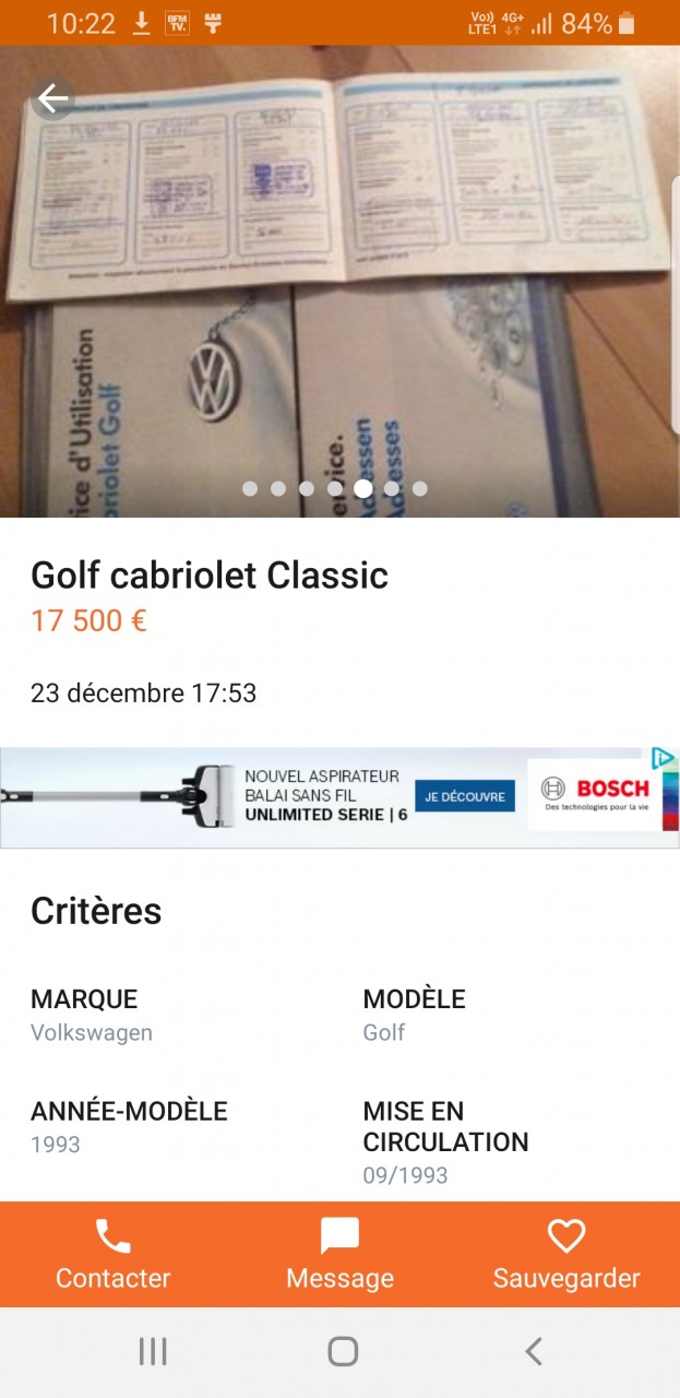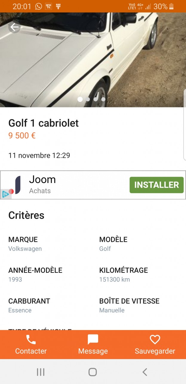 - Voiture : Golf 1 cabriolet