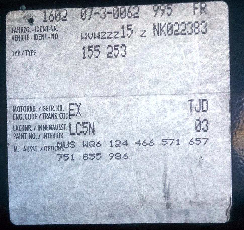 Par exemple, sur le classicline, il y a les vitres teintées ou la capote électrique, à moins que ce ne soit le code option 855 de mon étiquette pour lequel je n'ai pas trouvé de correspondance, tout comme les codes MUS (Musique ? pré-équipement radio ?) et WQ6... :foldingo :dodo