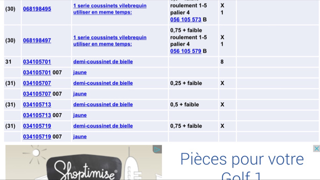 Pour les coussinet de bielle je prend les 034105701007, c'est bien ça ?, les autres c'est pour ceux qui rectifie le vilebrequin ? Sent from my iPhone using Tapatalk