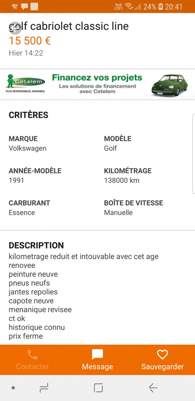 Voiture : Golf 1 cabriolet