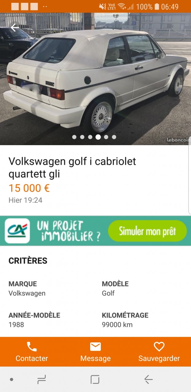 - Voiture : Golf 1 cabriolet