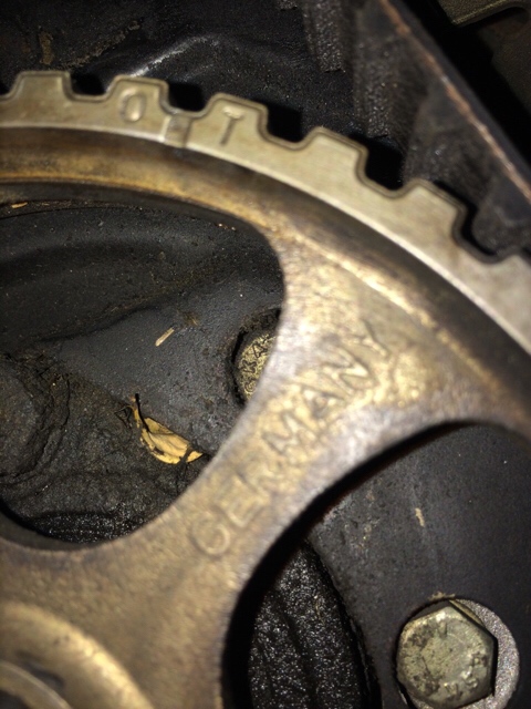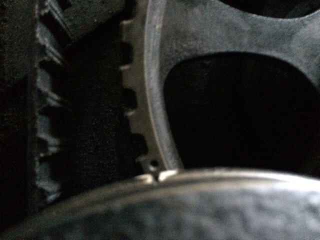 Par contre sur la poulie de l'arbre intermédiaire j'ai 2 repère, l'un est un point et l'autre OT.