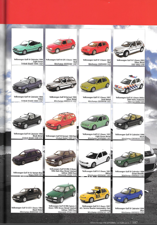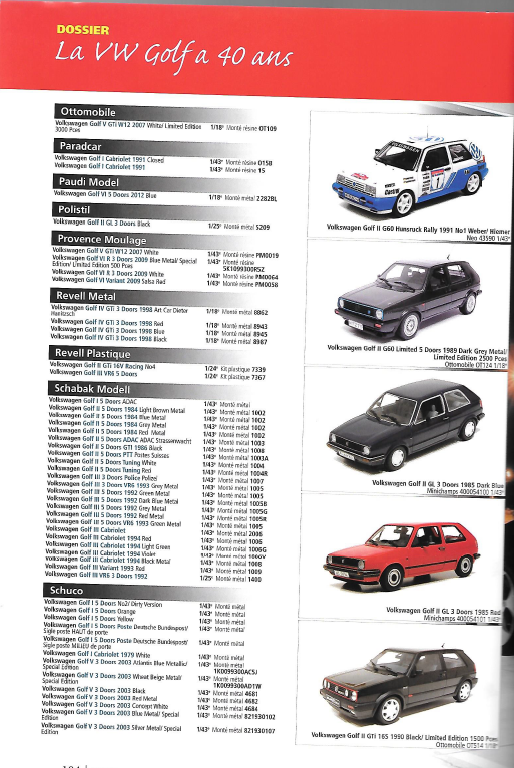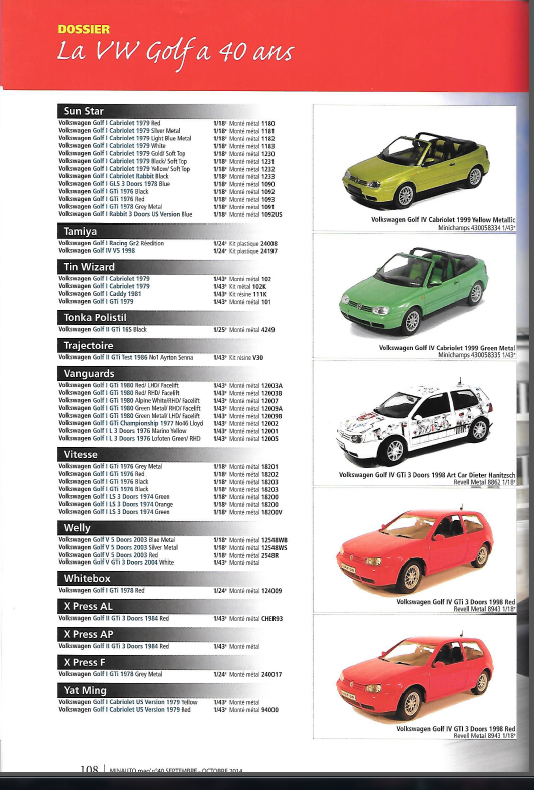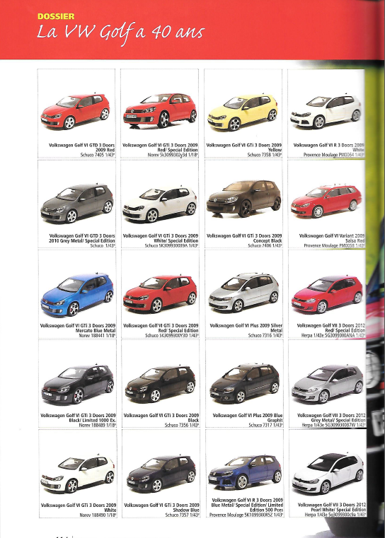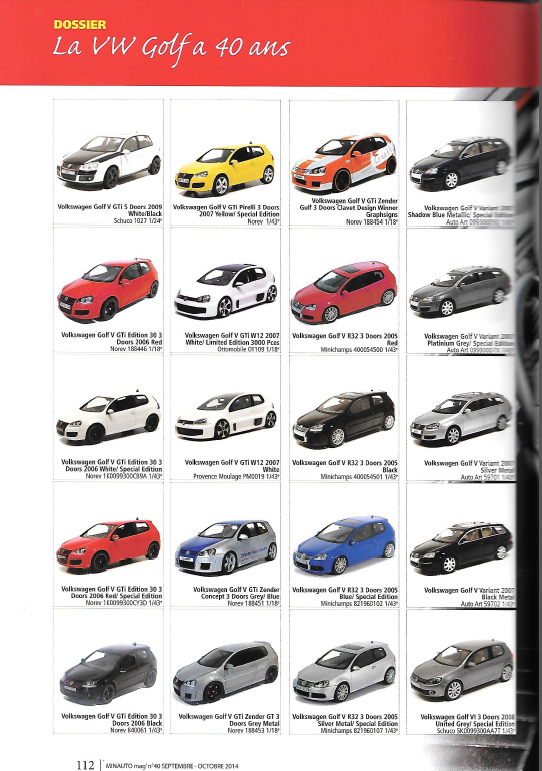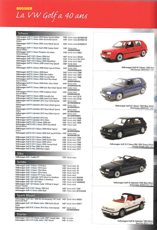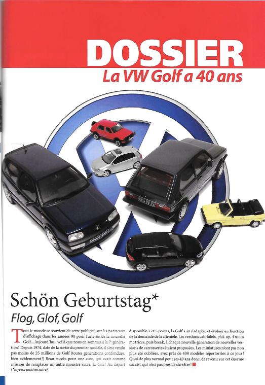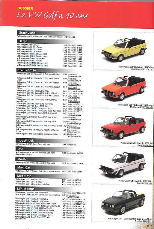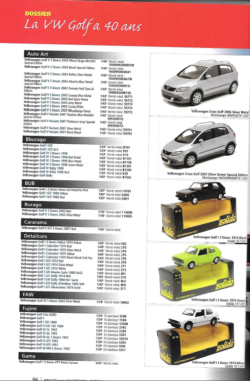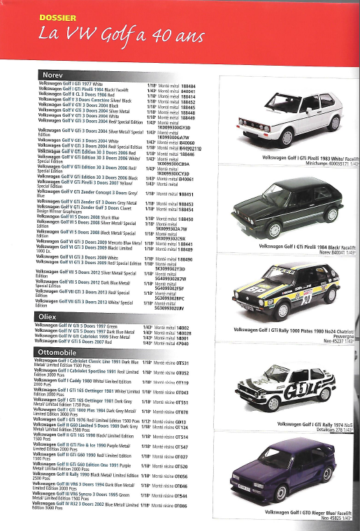 Il retrace notamment sur 20 pages et fabricant par fabricant toutes les sorties miniatures de la Golf.