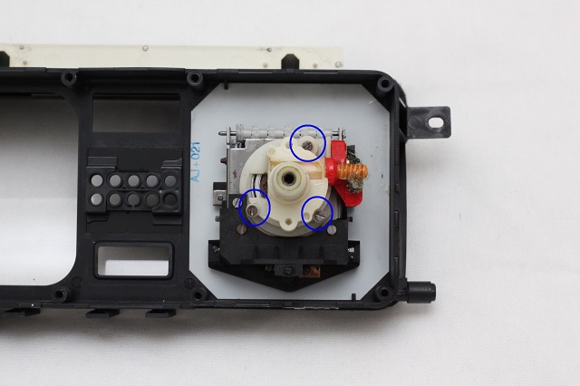 Ensuite soulevez la partie arrière des compteur et il doit vous rester ceci, retirez les 3 visses en bleu: