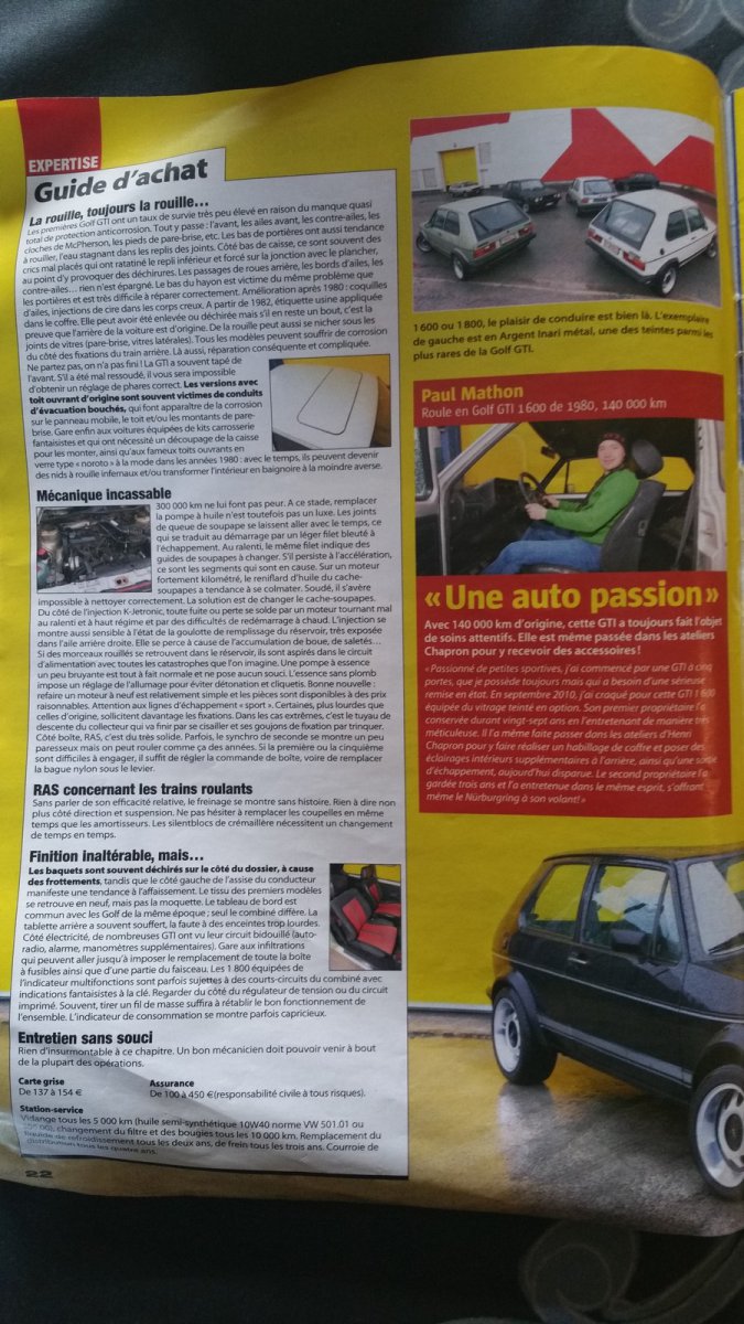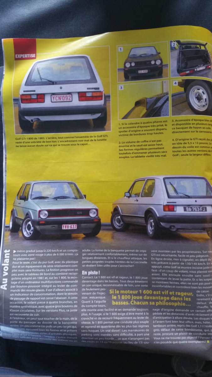 J'ai retrouvé un article dans une revue YOUNGTIMERS sur la golf 1 GTI. Je l'ai pris en photos avant qu'il ne rende l'âme.