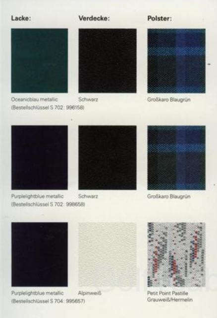 Jantes 6jx14 ET38. Retroviseurs couleur caisse. Capote et housse de capote bleues. Capote Alpaga et ciel de toit noir. Volant, Pommeau, soufflet et levier de frein à main en cuir, monogrammes latéraux; equipement intérieur bleu Maurice (chassis à partir de 15-M-016000)