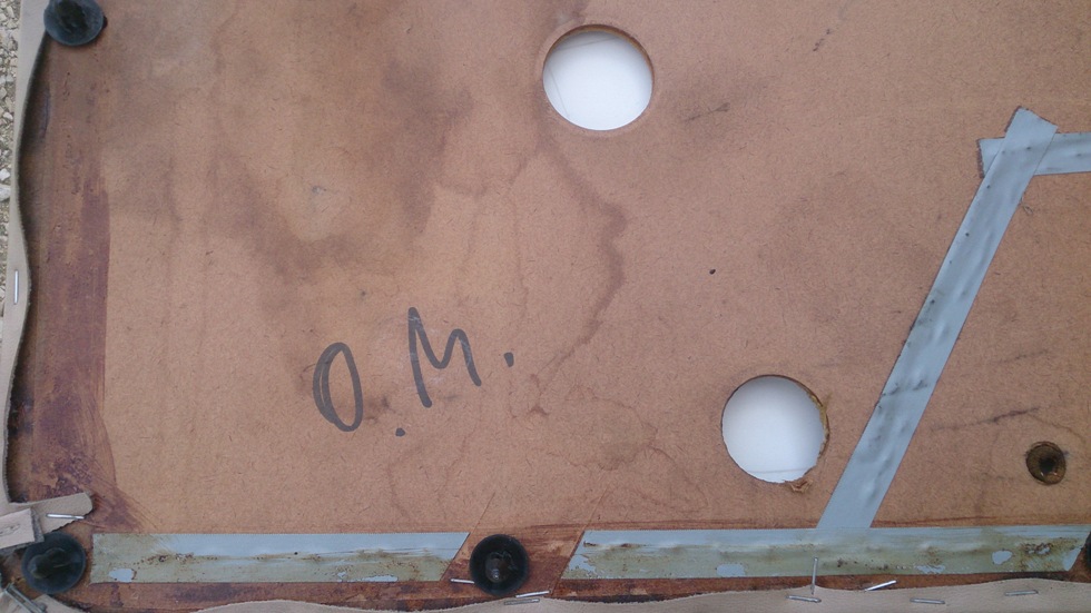 Autre remarque, derrière mes panneaux de portes, il y avait une inscription au marqueur noir, "O.M." à laquelle je n'avais pas porté attention (pensant que ça pouvait être le propriétaire qui avait écrit ça pour faire un repère ou autre...)