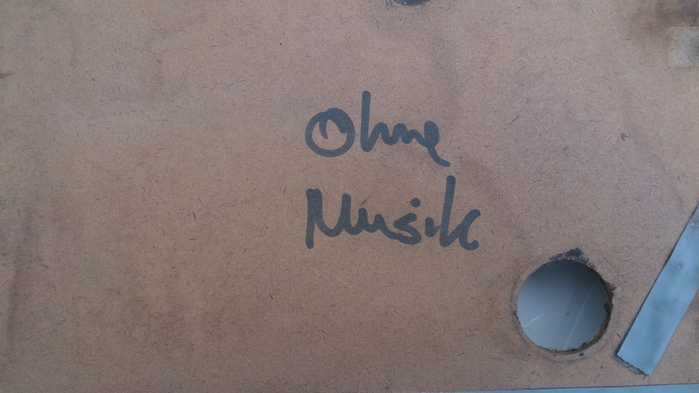 Donc, "Ohne Musik" = "sans musique", une bien grande formule pour repérer qu'il ne faut pas monter les tweeters. Ils devaient déjà préparer les paires de panneaux sur la chaîne, préalablement au montage des HP puisque seul l'un des deux est marqué.