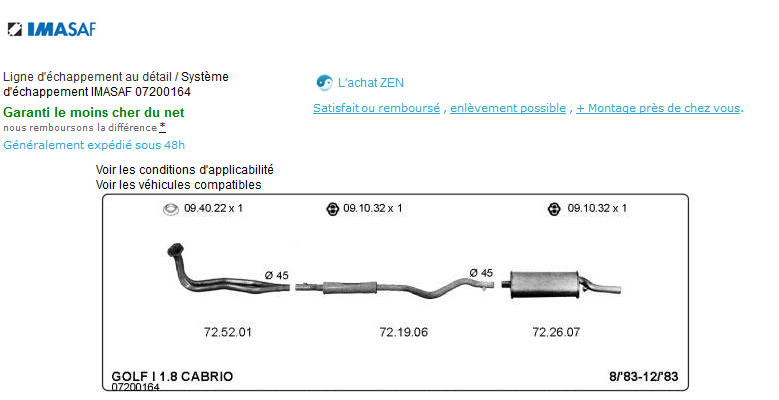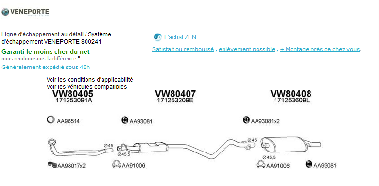 Il suffit ensuite de taper dans Google la marque + la ref numérique qui apparait sur le schéma de la ligne d'échappement pour en trouver son prix parmi les vendeurs du WEB...