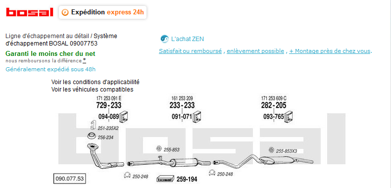 Il suffit ensuite de taper dans Google la marque + la ref numérique qui apparait sur le schéma de la ligne d'échappement pour en trouver son prix parmi les vendeurs du WEB...