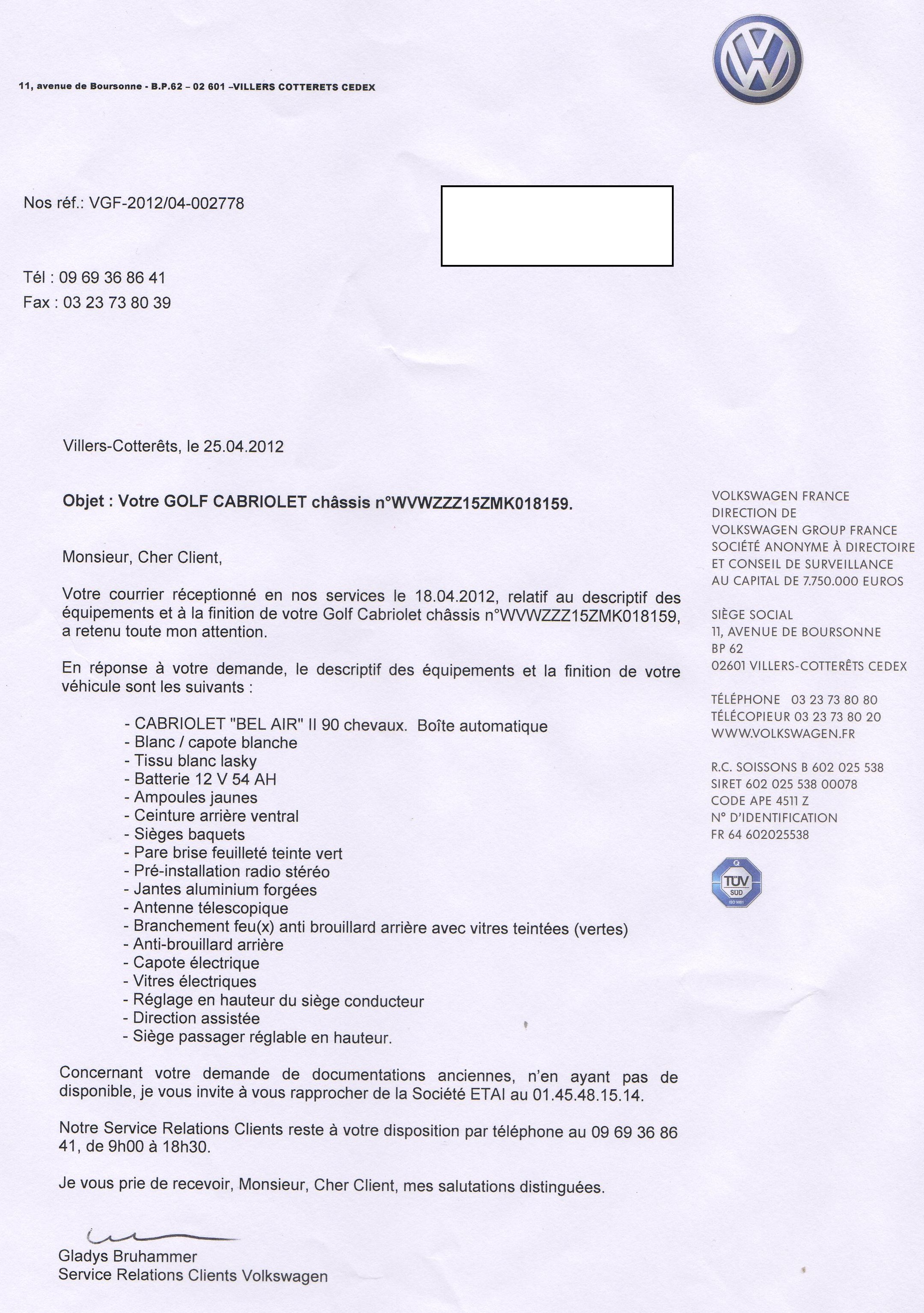 Salut je me permets de déterrer le sujet nouveau proprios d’un golf cab de 1989 plus d’étiquettes ds le coffre et pas de carnet et la voiture a été ds les mais de « jacky tuning »