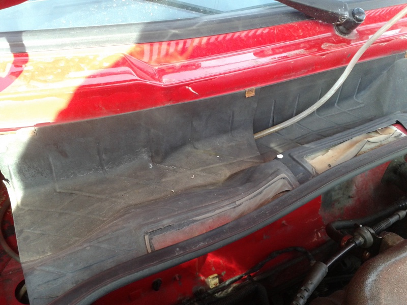 il ne reste plus qu'a sortir le ventilateur (attention il est maintenue par une partie qui vient se placer dans une fente du bloc de ventilation), pour une meilleur efficacité et le sortir le plus simplement possible, il est recommandé d'enlever tout le système d'essuie-glace, les deux bras, les deux vis de maintient et de le pousser sur le coté droit dans la baie de pare-brise.