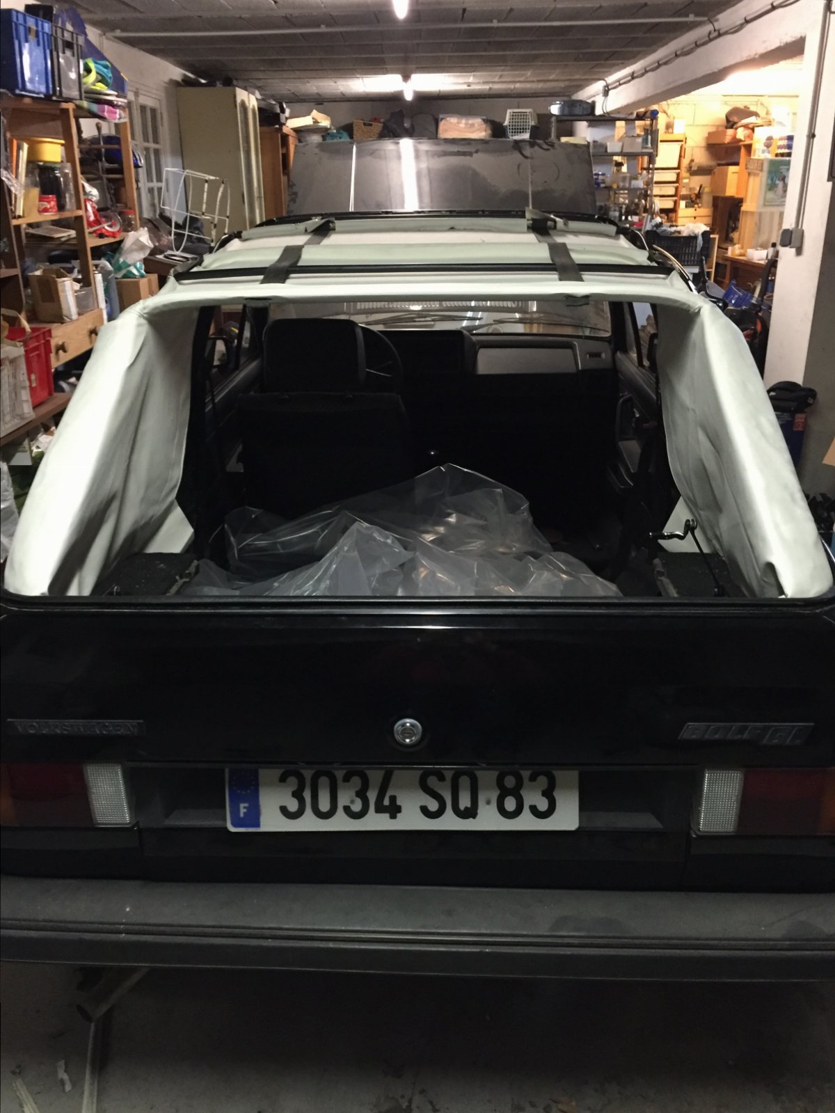 l'ensemble ciel de toit, matelassure et capote m'ont pris la semaine à peu près