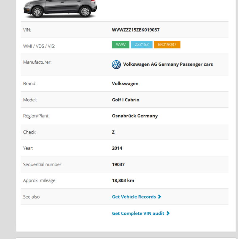 Je tombe sur un site Volkswagen , je rentre mon numero de chassis et...................