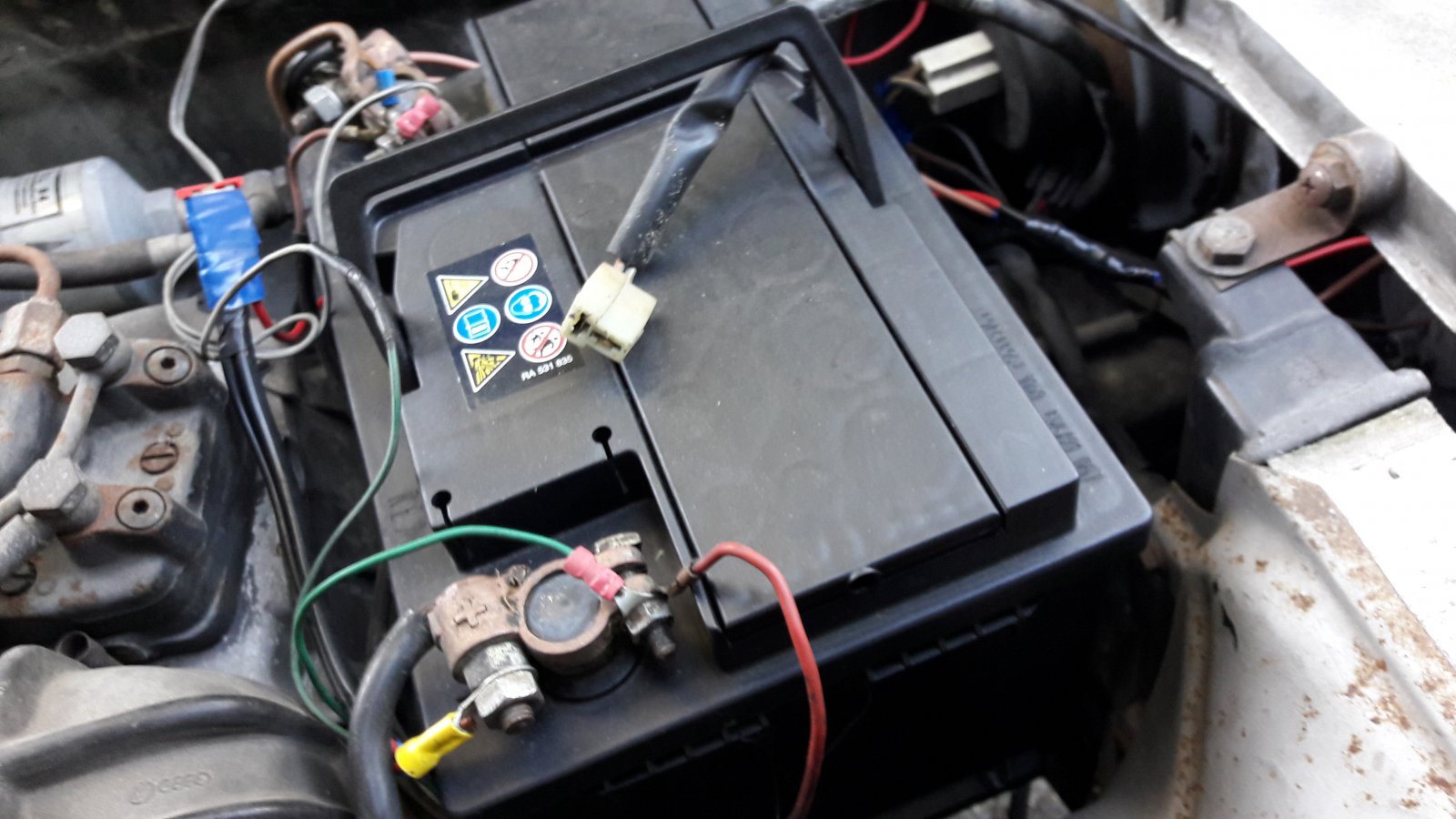 Bonjour ! j'ai chercher du coter du bac batterie ??? Mais je n'est, rien vue ! Je ne connais pas la couleur, des fils ! ni d'ou il sorte, quelqu'un aurais t'il une photos ..Merci