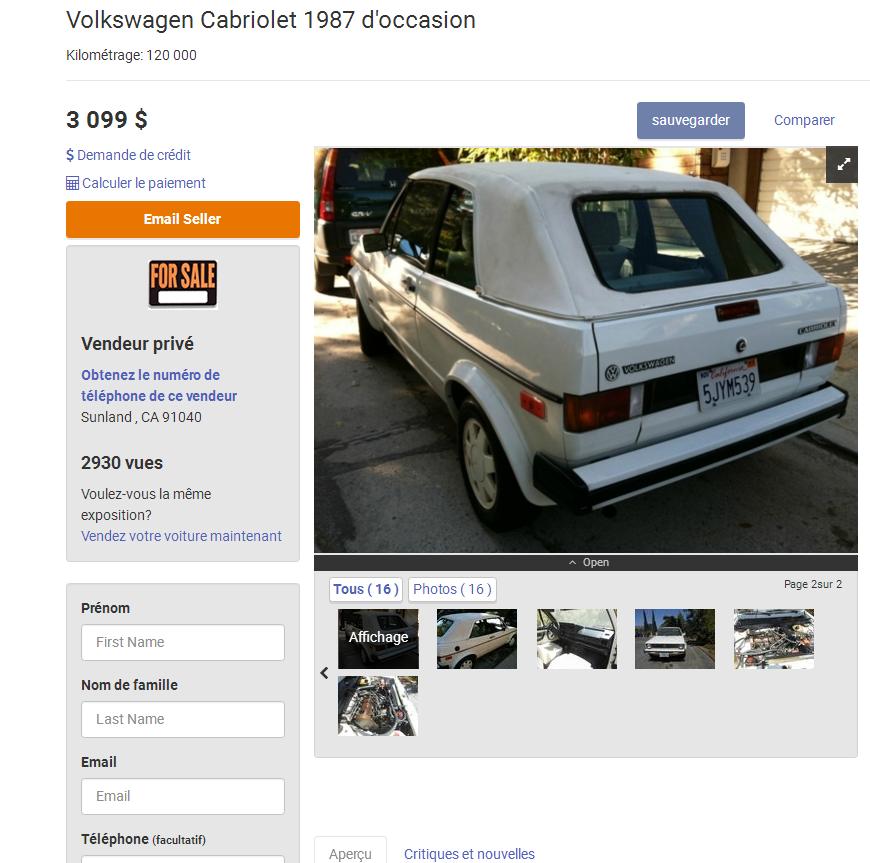 par curiosité , je suis aller voir les cab à vendre outre Atlantique, et suis tombé sur cette annonce