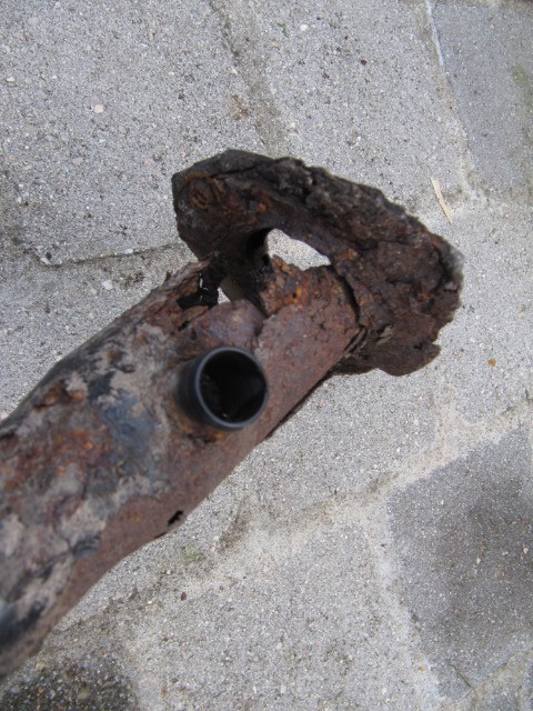 la face interne de la goulotte présentait de la corrosion depuis pas mal de temps et dernièrement, j'avais remarqué une odeur d'essence à côté de la voiture, ce qui trahissait un percement de cette goulotte.