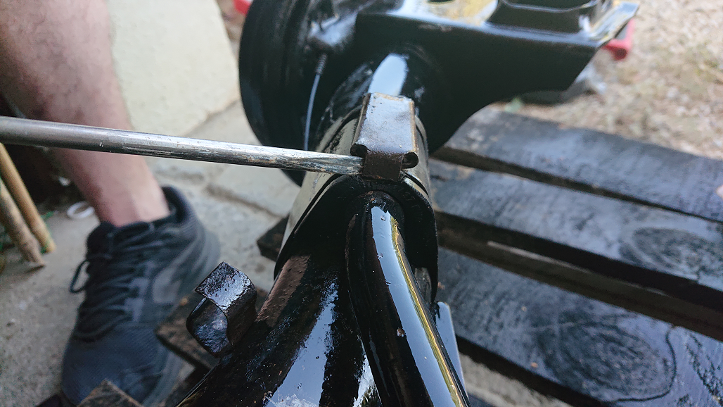 je précise aussi que le train arrière était totalement déposé du cab et retrait canalisations de frein .ceci facilite grandement l'opération je pense