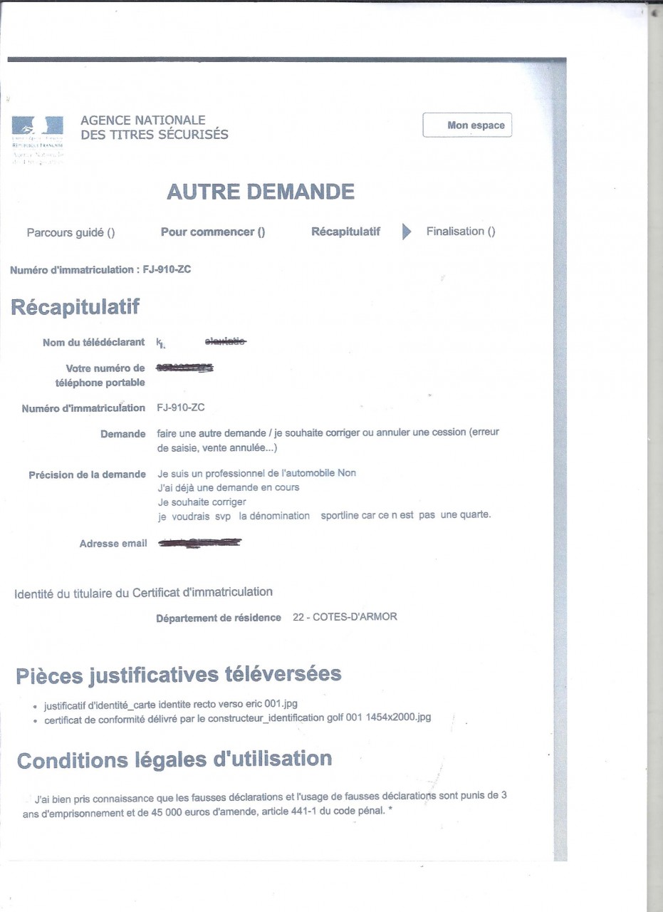 Je leur est donc écrit en leur envoyant une copie de ma carte grise et une copie de mon étiquette de coffre et en leur demandant sil était possible d avoir un justificatif comme quoi je possédais bien une sportline , afin de pouvoir faire rectifier ma carte grise .