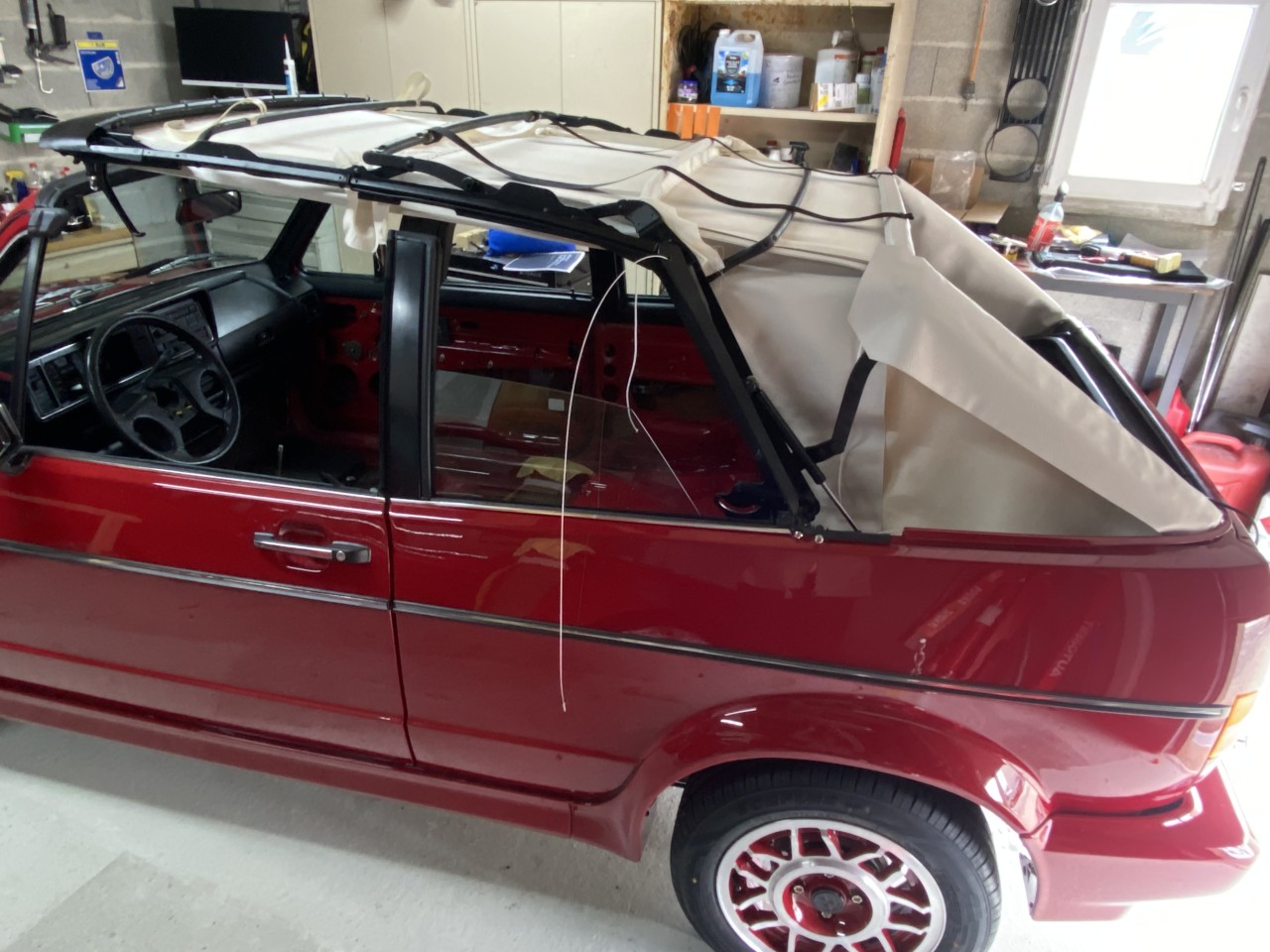 je suis en train de mettre le ciel de toit et je bloque sur la petite sangle blanche avec un elastique. Sur la vidéo vw, la partie blanche passe dans une doublure du ciel et est fixée par une vis sur l’arceau intermédiaire hors sur mon ciel de toit, la doublure va jusqu’à l’arceau du centre .,. Faut il que je coupe le doublage du ciel ?