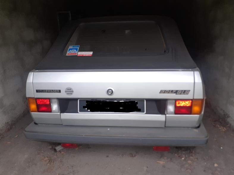 J'ai craqué, l'occasion était trop tentante. J'ai ramené la Golf à la maison sur remorque. Le moteur n'était pas bloqué, et en plus elle tourne ! Il a suffit de lui brancher une batterie.