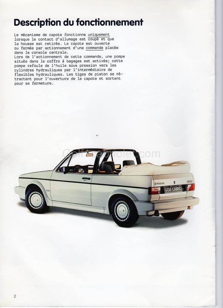 Ceci est une notice technique Volkswagen, en français qui vous donne tous les détails techniques, électriques, etc. du fonctionnement d’une capote a système hydraulique: